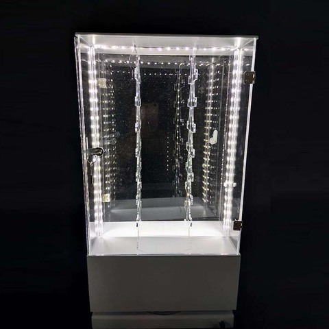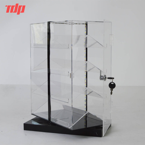 Gabinete de exhibición de acrílico giratorio de encimera en forma de polígono personalizado de fábrica con puerta con cerradura de luces LED
